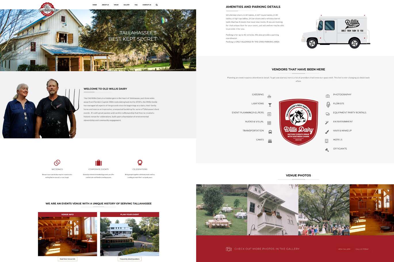 Wanting to pay homage to the family’s history dating back to 1937. Brought a modern facelift to the brand while keeping some key historical aspects. With that followed a complete custom website to showcase the history of the farm now turned venue to all of Tallahassee.